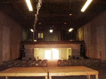 View from stage towards entrance and balcony without drop ceiling