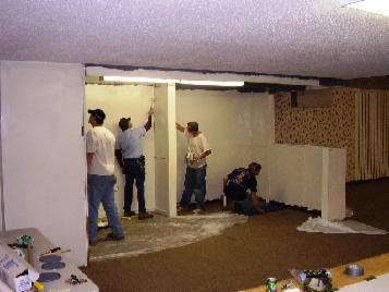 Volunteers painting the future restroom area